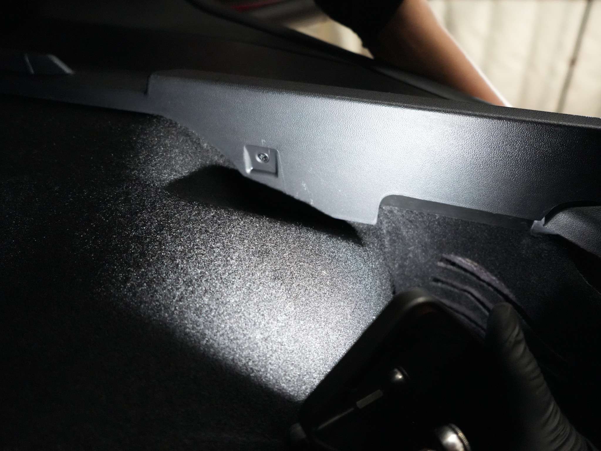Remove the screws on both sides of the trunk cargo plastic cover panels.