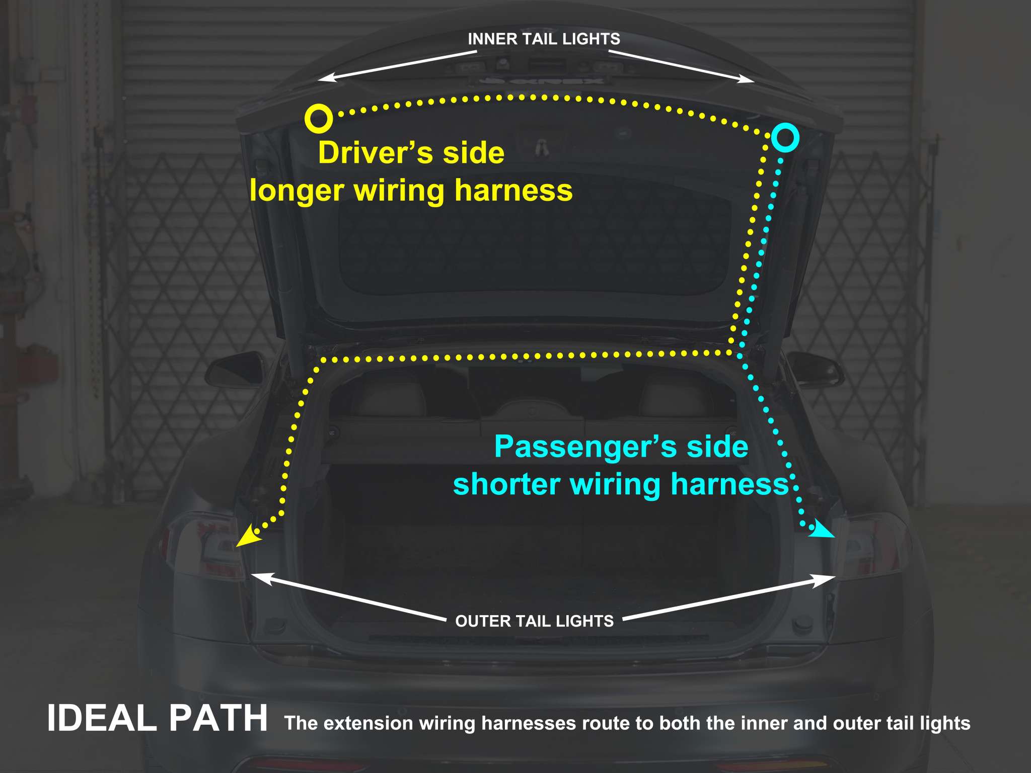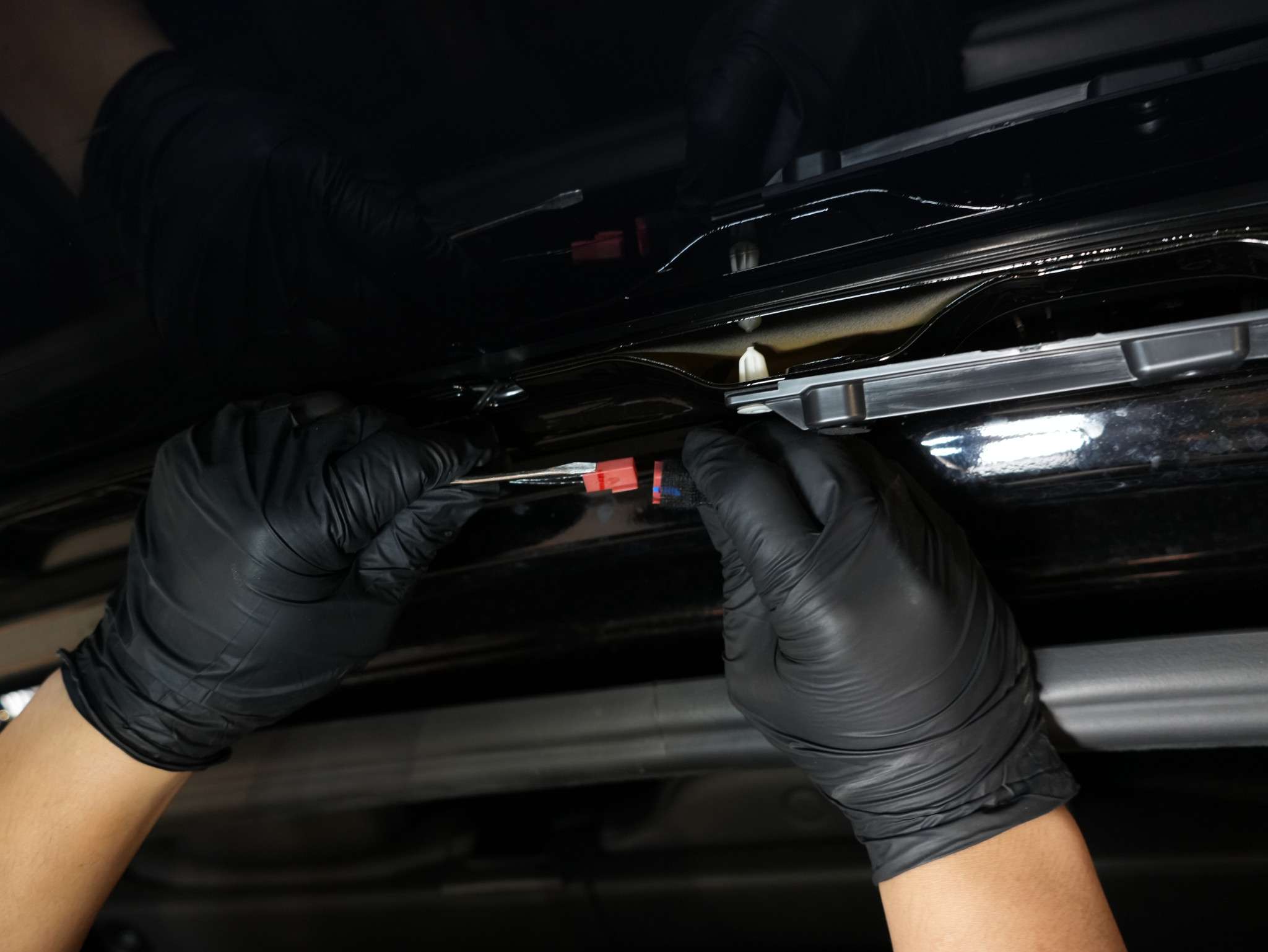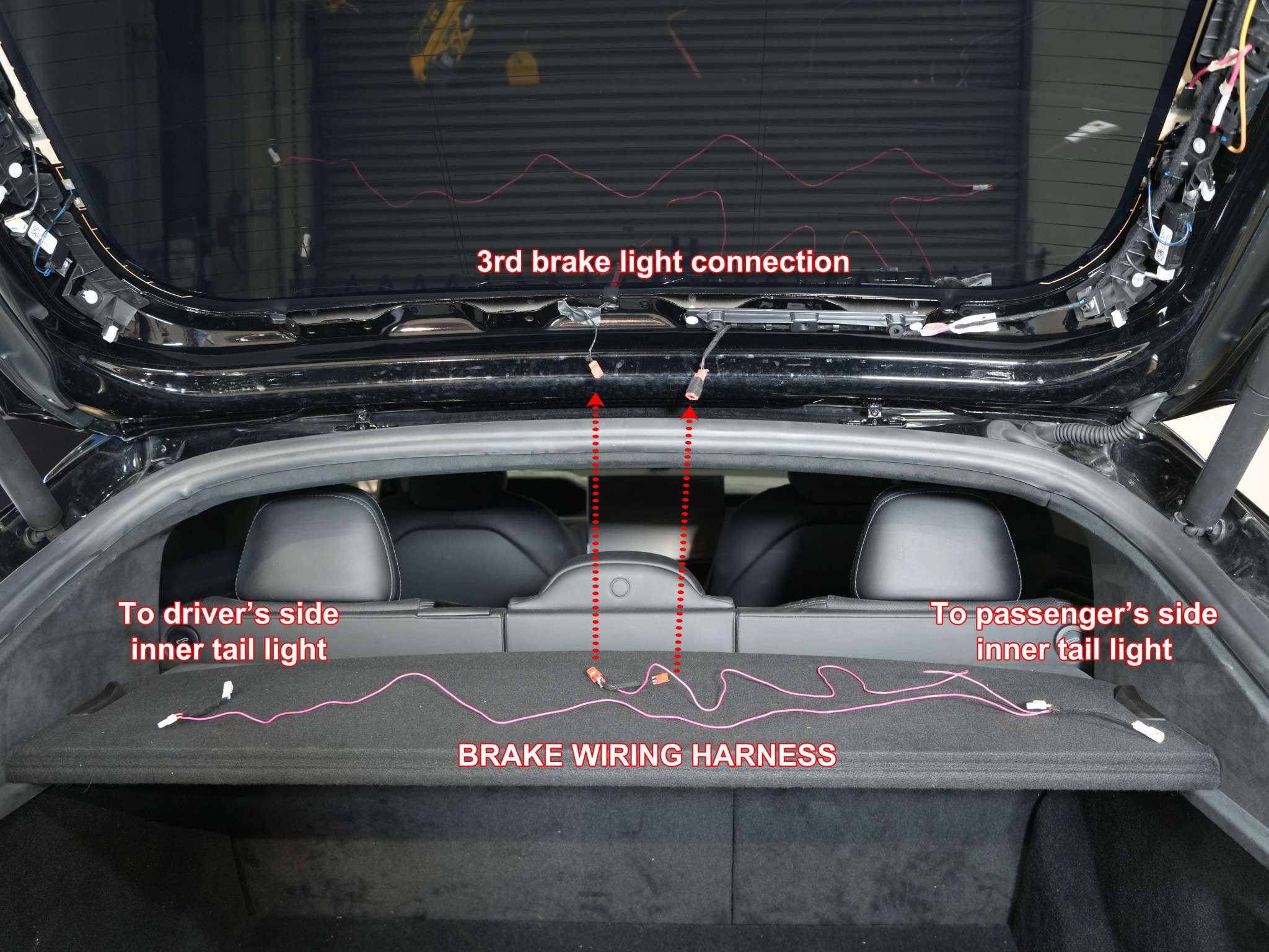 Connect the connectors to the vehicle’s third brake light connection, then route the wire harness to each side of the inner tail light assembly location.
